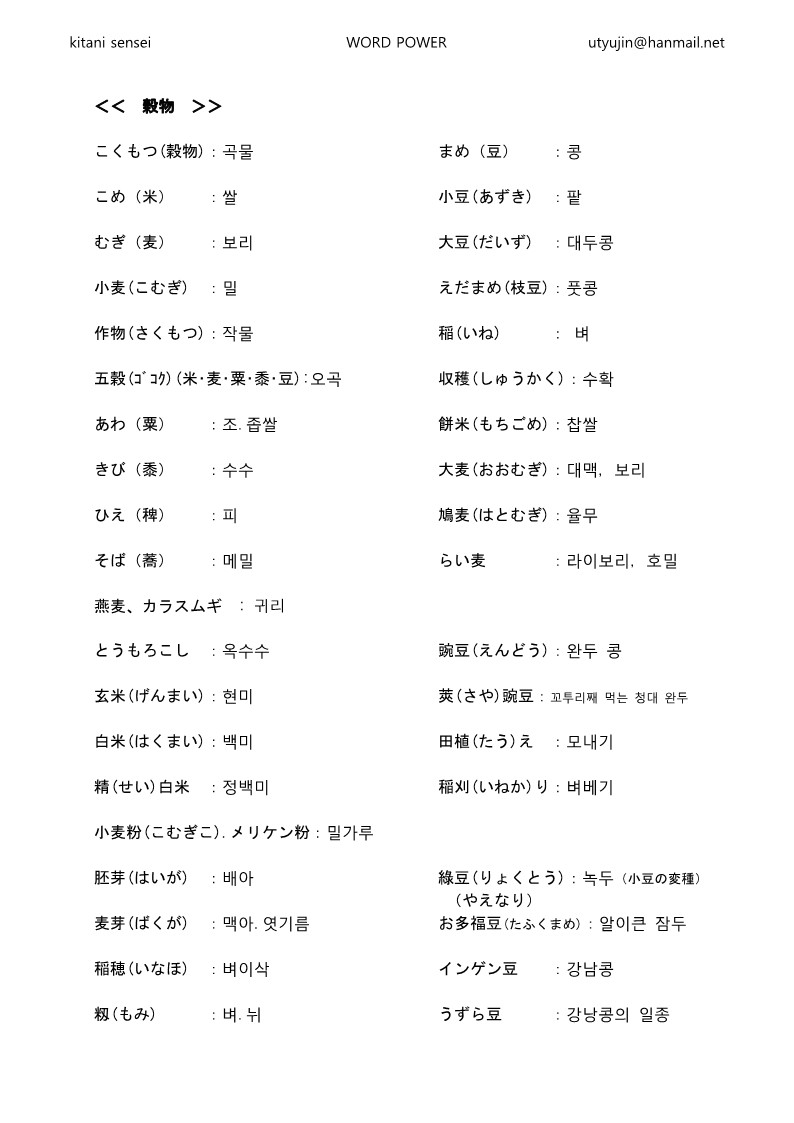 日本と韓国の穀物の名前