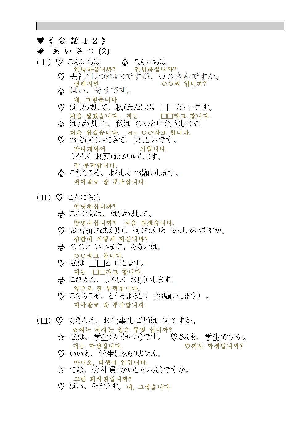 《 会話 1 》◈ あ い さ つ (인사말)