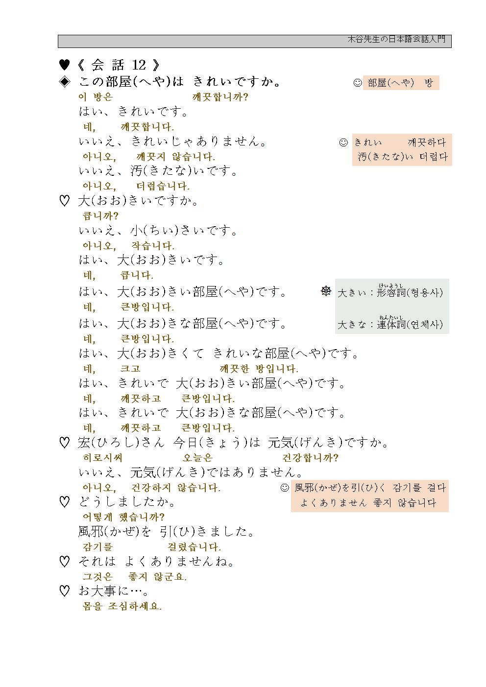 《 会 話 12 》◈ この部屋は きれいですか。이 방은 깨끗합니까?