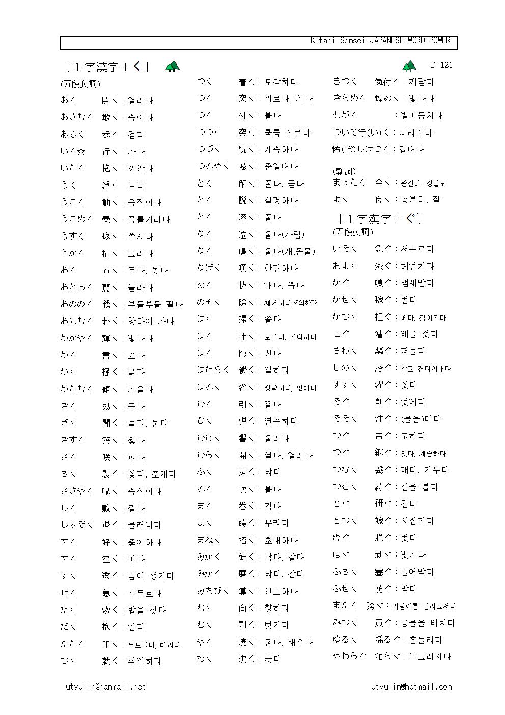 〔1字漢字+る〕 (五段動詞、一部はその他の動詞) あおる 呷る:단숨에 마시다 あおる 煽る:부채질하다,선동하다 あせる 焦る:안달하다 あまる 餘る:남다 あやまる 謝る:사죄하다 ある 有る:있다 いたる 至る:이르다 いたわる 勞る:노심하다,위로하다 いのる 祈る:빌다 いる 要る:필요하다 いる 入る:들어가다, 들다 いる 炒る:볶다 いる(上一段)居る:있다(사람,동물) いる(上一段)射る:쏘다 うつる 移る:옮기다 うる 賣る:팔다 おくる 送る:보내다 おこる 怒る:화내다, 성내다 おこる 熾る:불이 붙다 おごる 奢る:사치하다,한턱내다 おごる 驕る:거만 떨다 おこたる 怠る:게을리하다 おとる 劣る:뒤떨어지다 おどる 踊る:춤추다 おる 織る:짜다 おる 折る:접다, 굽히다, かえる 歸る:돌아오다 かえる 返る:(원상태로)돌아가다 かぎる 限る..