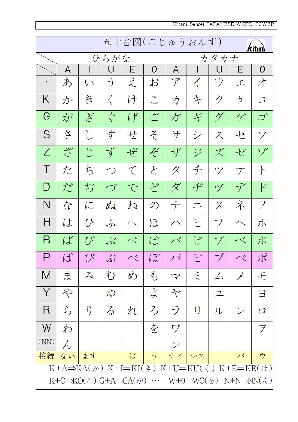 | Z | ざ | じ | ず | ぜ | ぞ | ザ | ジ | ズ | ゼ | ゾ |
