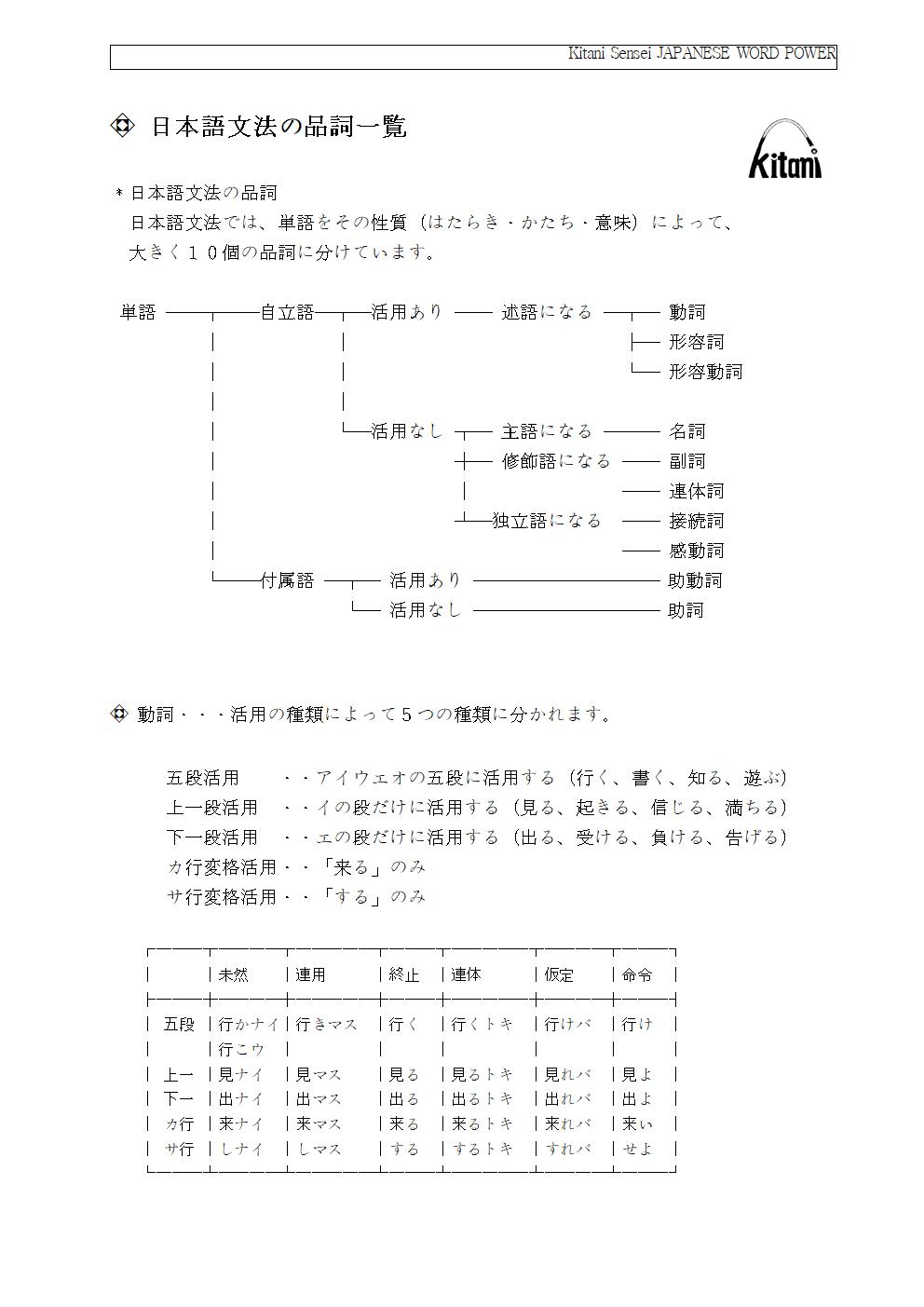 *日本語文法の品詞