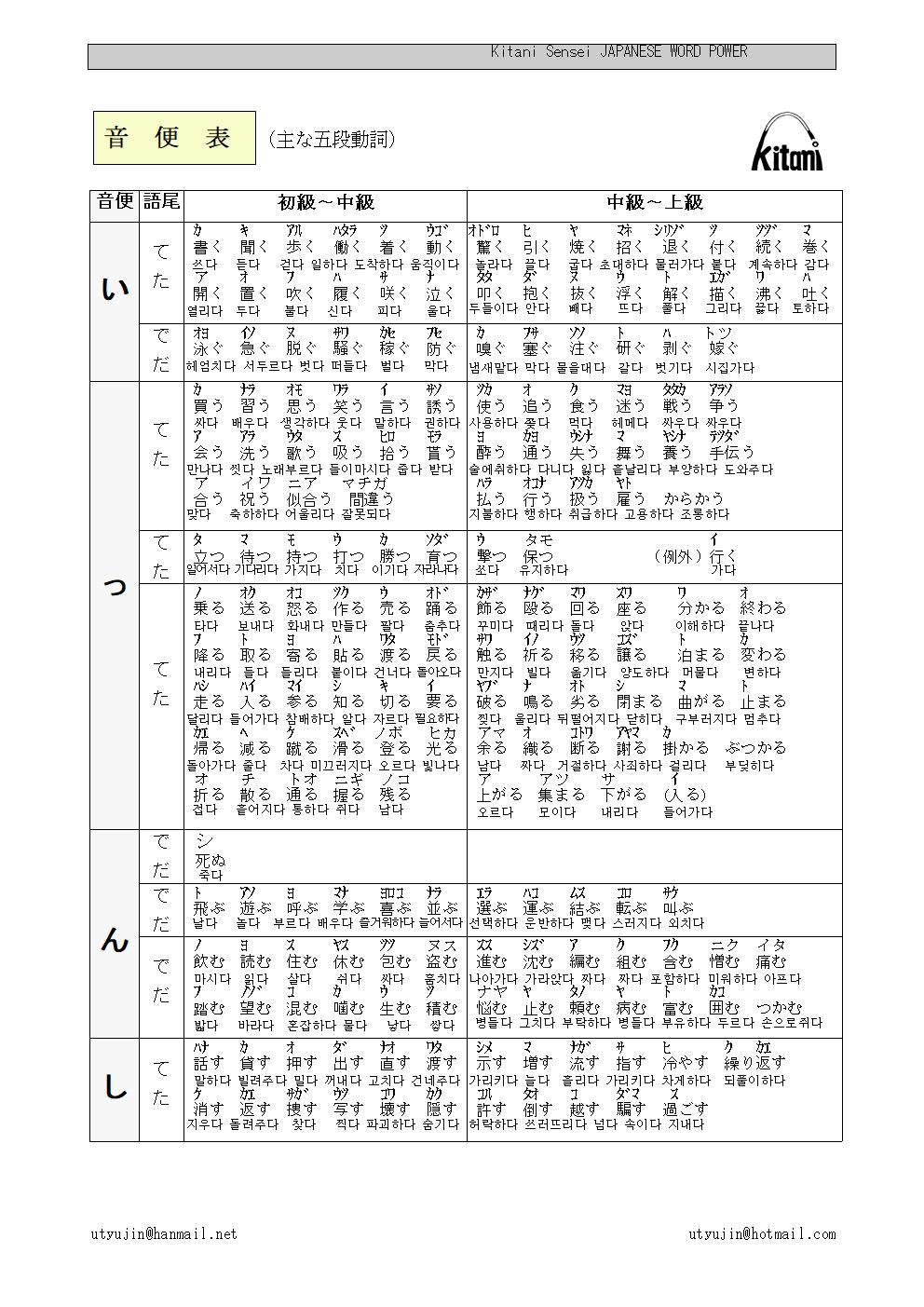 | 音便 | 語尾 | 初級~中級 | 中級~上級 |
